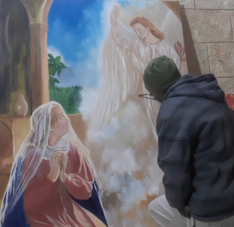 The oil paint was painted at the atelier at Nazareth city by the artist mr. Elias Akleh at first 2020 in Nazareth at the atelier which is located beside the annunciation of the basilica of holy Mary.