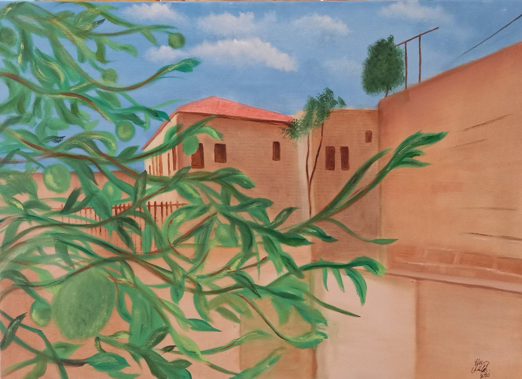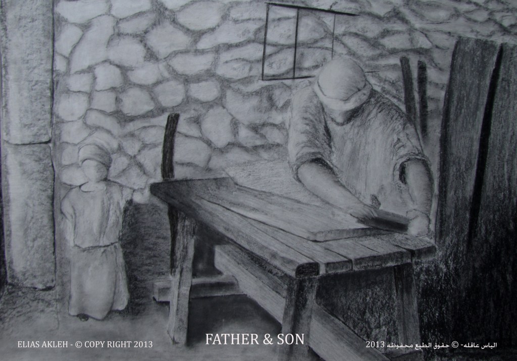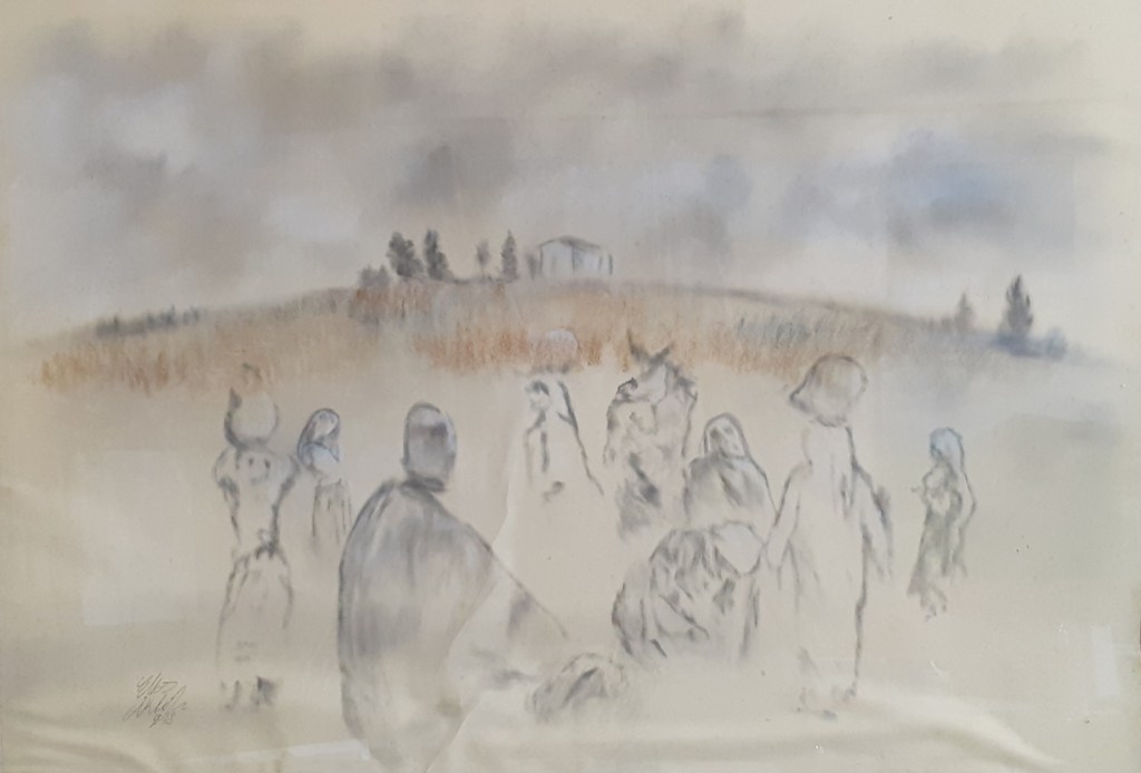 In the series “palettes from memory” the artist displays a charcoal on paper Palettes which had taken and inspired from social life, still life and figures from Nazareth city.