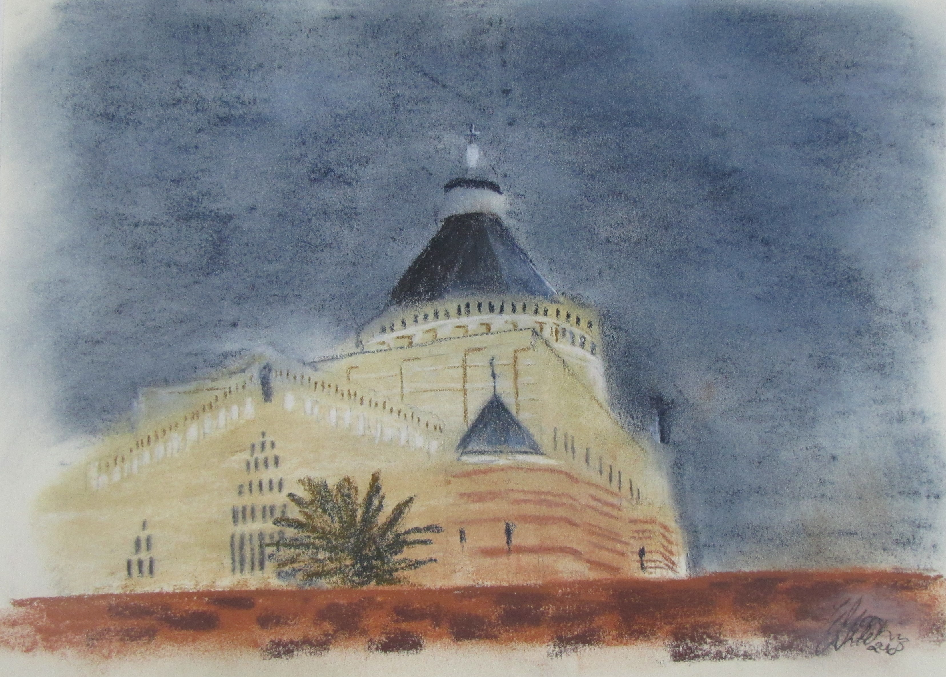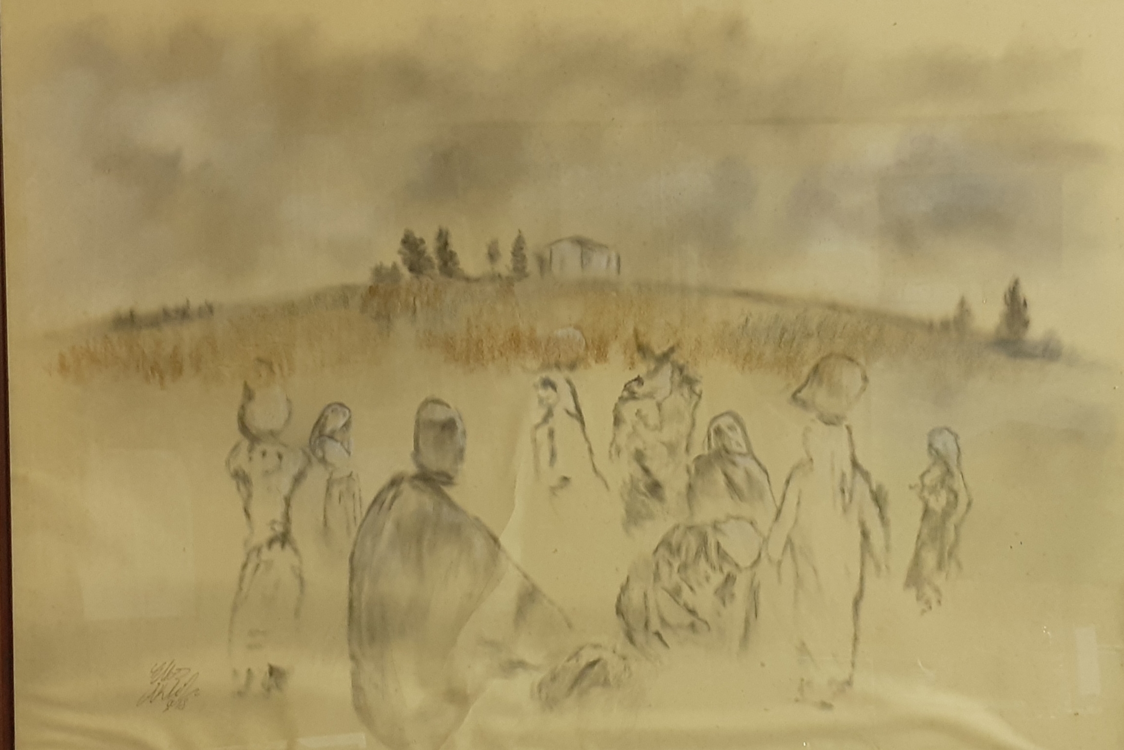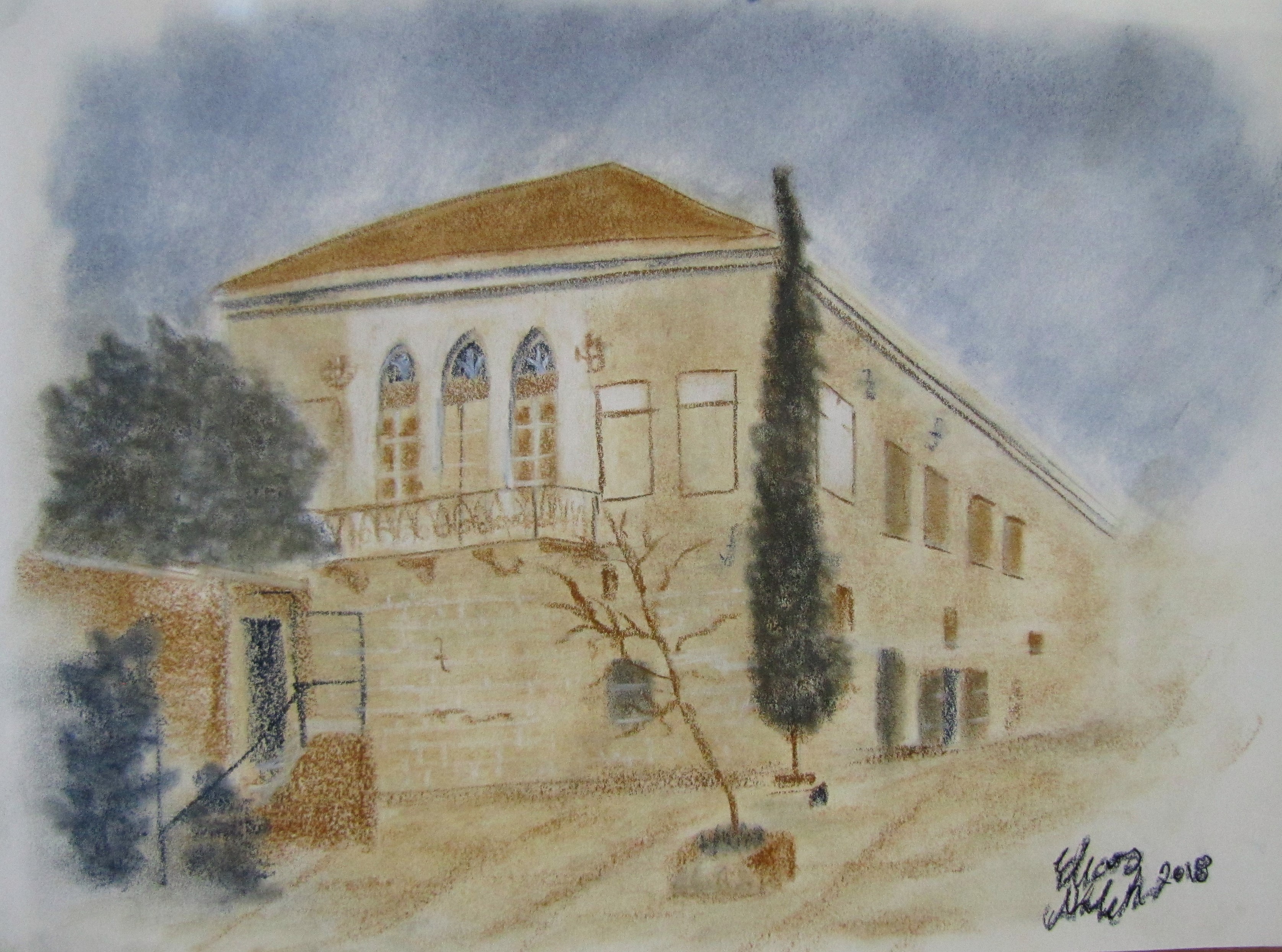 In the series “palettes from memory” the artist displays a charcoal on paper Palettes which had taken and inspired from social life, still life and figures from Nazareth city.